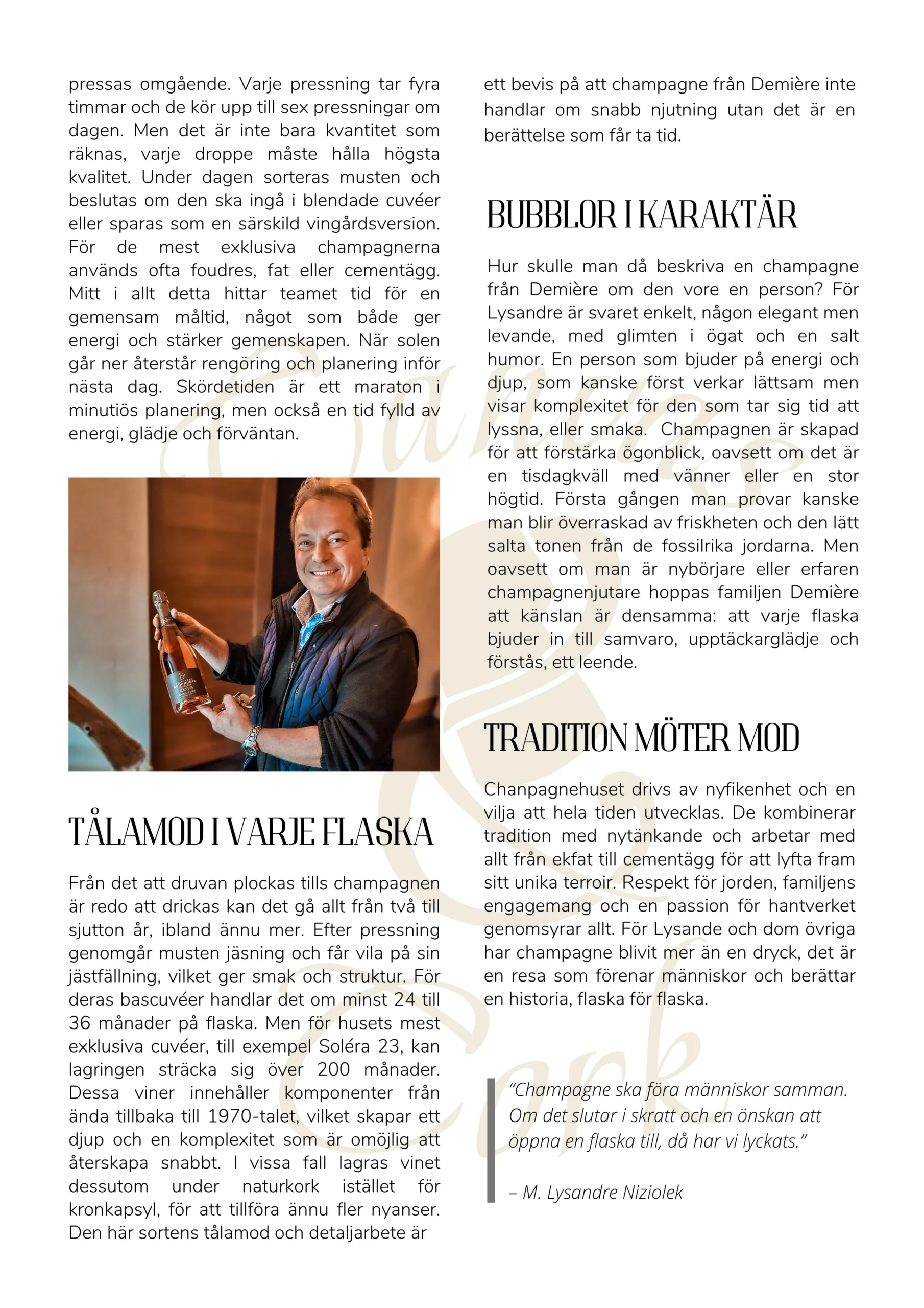 Nyfiken på ansiktet bakom produkten? En artikel om champagnehuset Demiere och deras produktion.